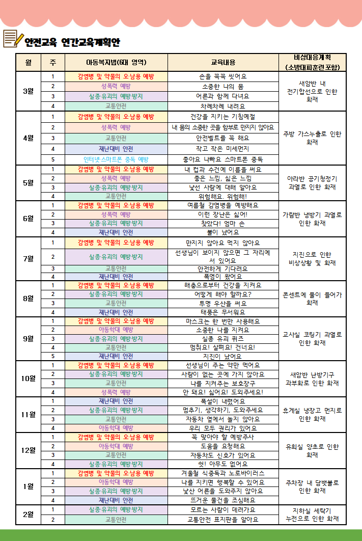 안전교육 연간교육계획안