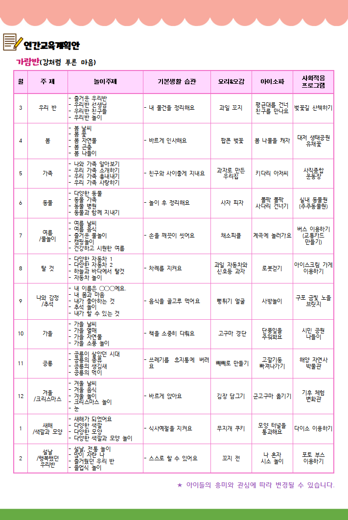 연간교육계획안